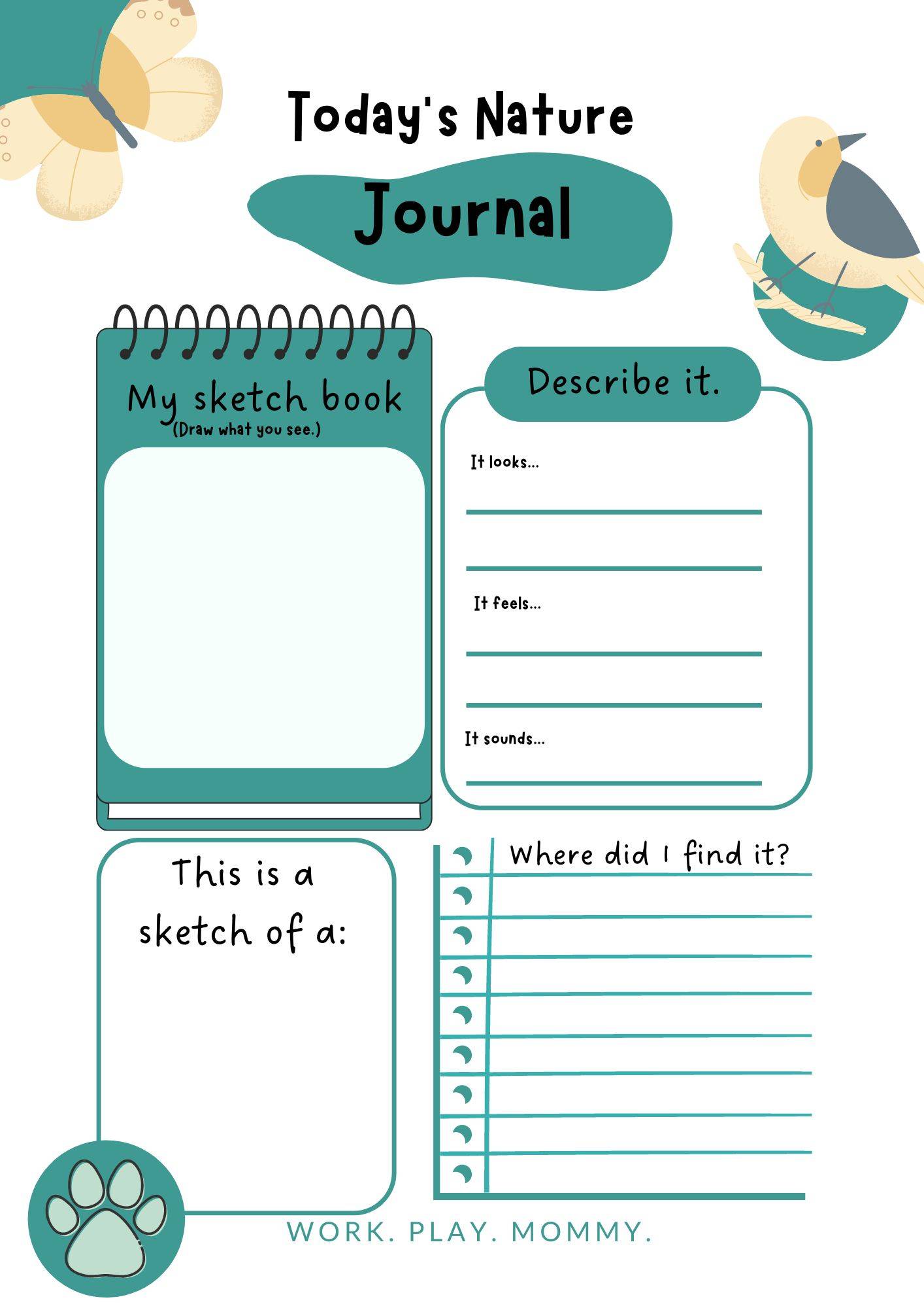 Free printable nature travel journal for kids to write, record, and observe your natural surroundings while you travel.
